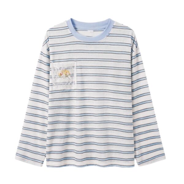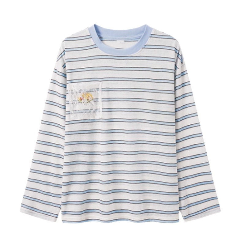Lace Pocket Patchwork Striped Long Sleeves